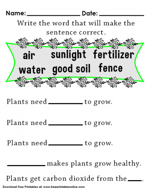 Plants Worksheets | K5 Learning These grade 2 science worksheets on plant life focus on what plants need to grow, how they develop and, especially, the mechanisms by which they pollinate and disperse seeds. Plant Anatomy. Identify the parts of plants and trees. Plants and Food. Match foods to the parts of plants they came from.